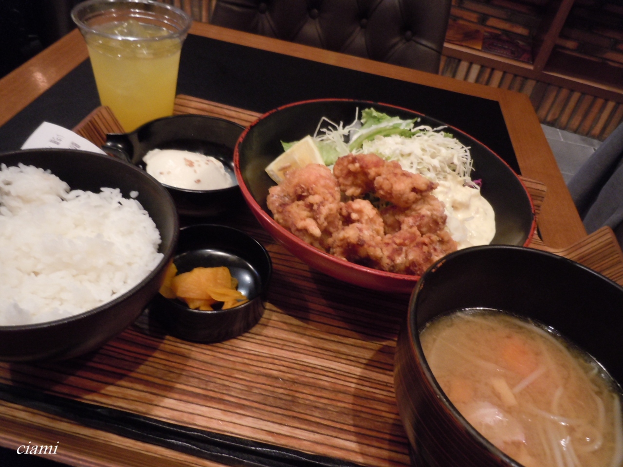 唐揚げもご飯もお味噌汁も、山盛りでボリュームがあります。