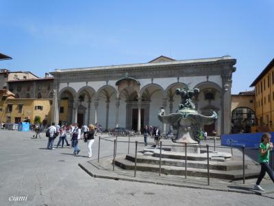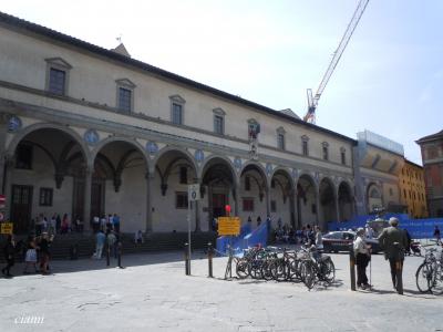 捨て子養育院、サンティッシマ・アンヌンツィアータ、ロッジャート・デイ・セルヴィーティ、3つの建物のアーチに囲まれた、落ち着いた広場です。