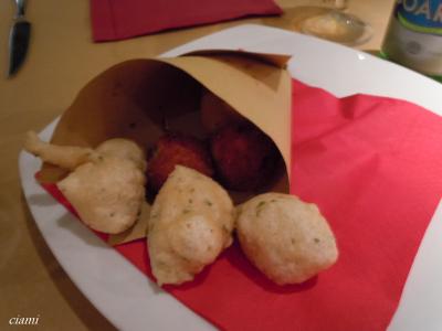 揚げものの盛り合わせで、小さいアランチーノやポテトのフライが入ってました。- 旅行時期