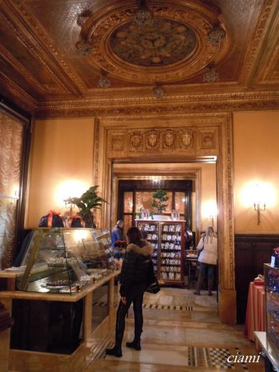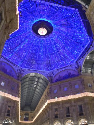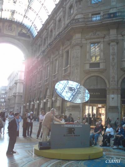 上にはガラスのドームとフレスコ画、下には凝ったモザイク、そして通りには老舗のブランドと上見たり下見たり忙しいアーケードです。