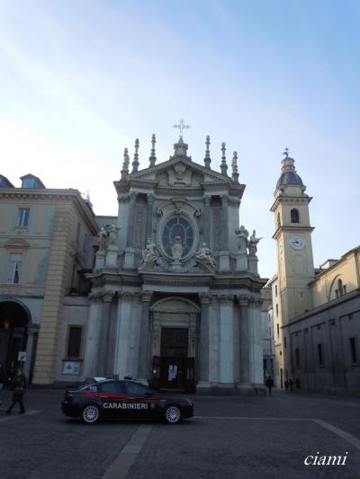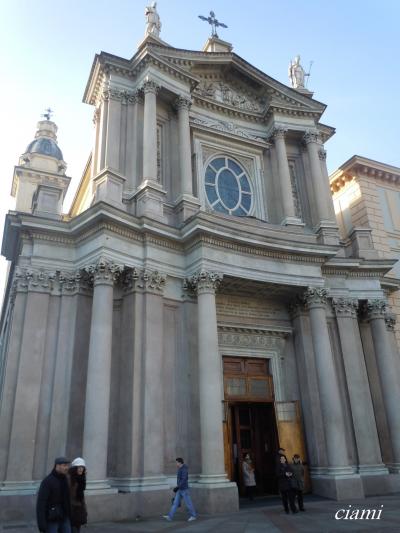 トリノの応接間サン・カルロ広場に建つ双子の教会のうちの1つで、屋根の上のチェスの駒みたいな飾りが目印です。