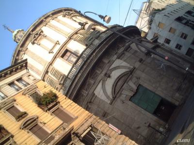 トリノ通りにたつ、ドラム缶のような形の教会で、クーポラ飾るブルーが印象的です。