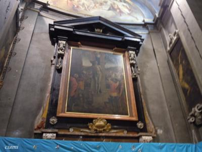 ミラノの守護聖人のサン・カルロ。祭壇画は、サン・カルロがミラノか歩いてトリノまで聖骸布を見に来たというところがテーマです。