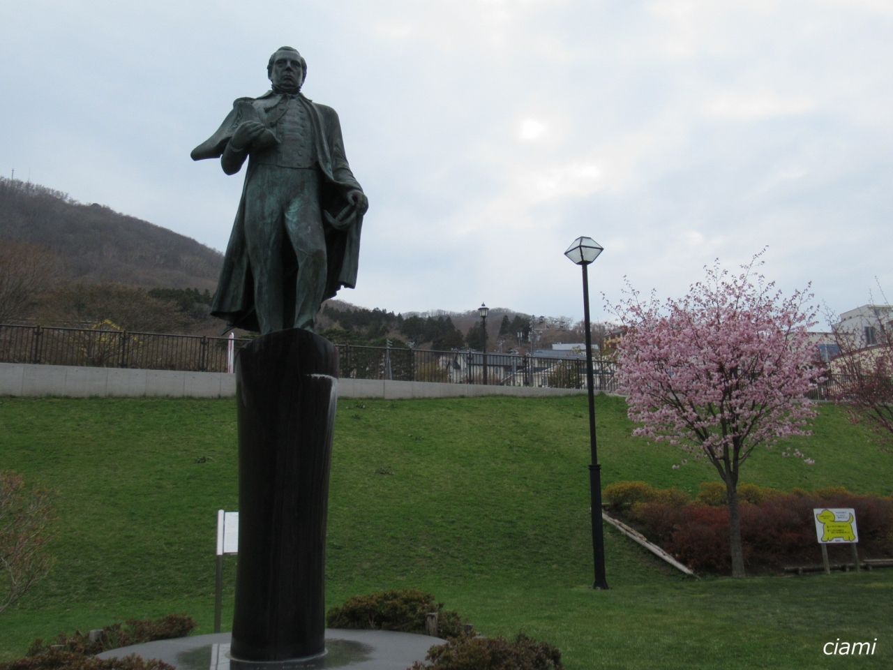 ノーマークでしたが、旧イギリス領事館にいくために基坂上っていて、桜が満開だったので、行った広場がペリー広場で、広場の隅にペリーの像が立ってます。