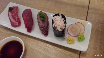 レアステーキ丼と馬ヒレカツセット、馬握りの盛り合わせを頼みました。カツはちょっとお肉が固くなっていました。握りの中でも、特にたてがみがおいしかったです。- 旅行時期
