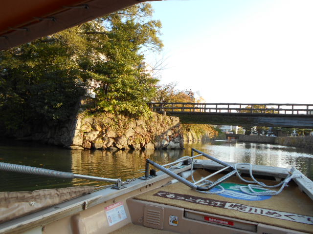 一日乗車券で乗ったり降りたり出来るので有効に利用して観光するのが得策だと思うのですが、松江に着いたのは夕方近く。最終便に乗る事になり、途中下車すればもう船には乗れないって時間でした。それでも乗ってみたかったのでお堀を一周しました。時間も時間だったので船は貸し切り状態。おかげで船頭さんに色々聞けて美味しいお店情報などお得情報を得る事が出来ました。