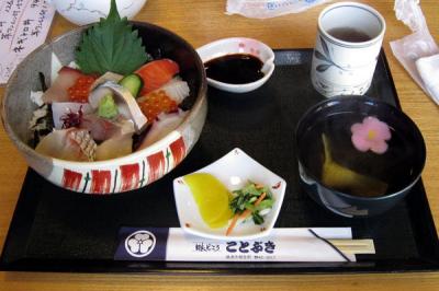 海鮮丼はいくつか種類がありましたが、私はタイ、ヒラメ、タコ、イカ、ホタテ、カンパチ、サケ、イクラ、タチウオ、アジ、サバとたっぷりのお魚が乗った海鮮丼をいただきました。(内容は季節・日によって変わるそうです)