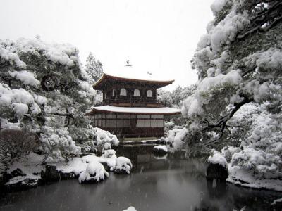 夏の緑の中に映える銀閣もいいですが、年に数回しか積もらない雪との組み合わせも風情があっていいかと思います。