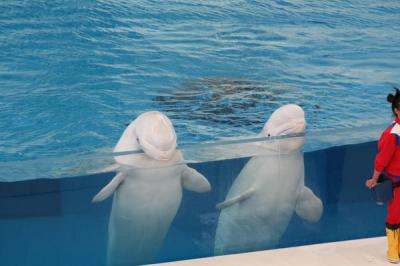 ベルーガとイルカのショーはもちろんのこと、ふれあいラグーンでは直接触れ合うこともできます。