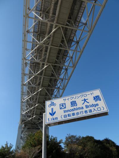 本州と四国を結ぶ3つのルートのうちの一つであるしまなみ海道。しまなみ海道の魅力は何と言っても、ほとんどの端に自転車道があり、サイクリングが楽しめるということです。今回は以前からの念願であったしまなみ海道走破サイクリングに挑戦しました。全長は70~80kmですが、アップダウンがあるため1日での走破は体力が必要です。今回は途中の生口島で一泊しての走破で、尾道から今治方向に向けての走行でした。尾道でレンタサイクルを借り、今治駅前で返すという行程でした。なんといっても海の風景が非常に美しく、橋の上で県境を越える多々羅大橋、つり橋が三連続するしまなみ海道最南端の来島海峡大橋など、絶景のサイクリングを楽しむことができました。また今回は12月に訪問しましたが、走行中は汗ばむほどでした。