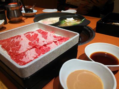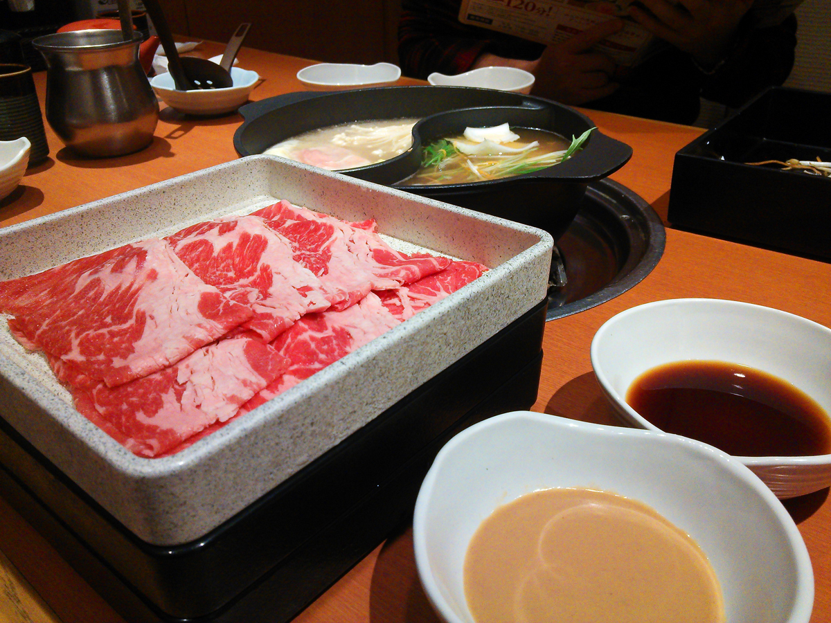 しゃぶしゃぶは、お鍋が二つに分かれていてダシを2種類選ぶことができます。またお肉も牛肉だけでなく、豚肉もあるのがうれしいです。
