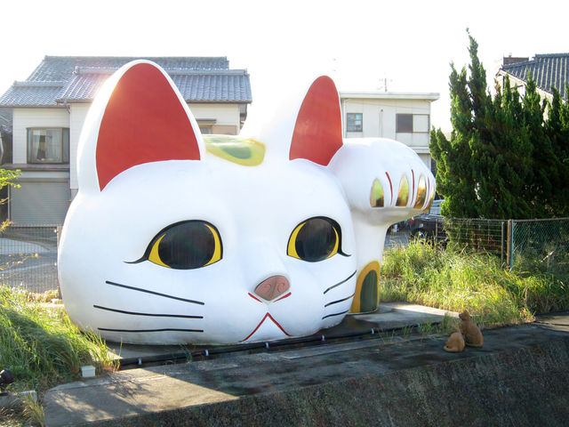 常滑焼で全国でも有名な常滑。その常滑駅を出て中部国際空港(セントレア)へ向かう電車の車窓からも見える、巨大な招き猫があります。