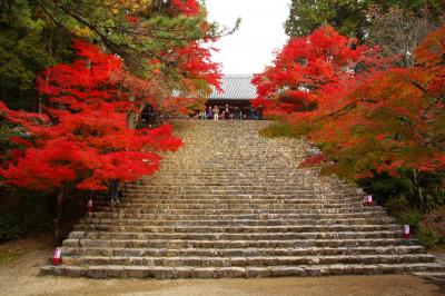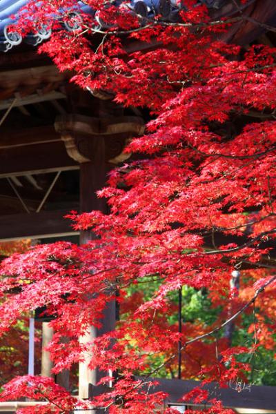 紅葉の名所高雄の中でも随一の境内の広さと紅葉の本数を誇る神護寺。特に金堂へと続く階段は両側に紅葉があり大変美しいです。