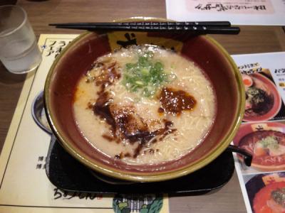 長崎駅に併設しているアミュプラザ内にある、とんこつラーメンのお店。福岡県内に本店があるお店の支店です。