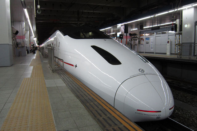 九州新幹線部分開通時から九州を走る800系。機構は700系をベースにしていますが、基本的に博多~鹿児島中央の九州新幹線内のみの運用です。