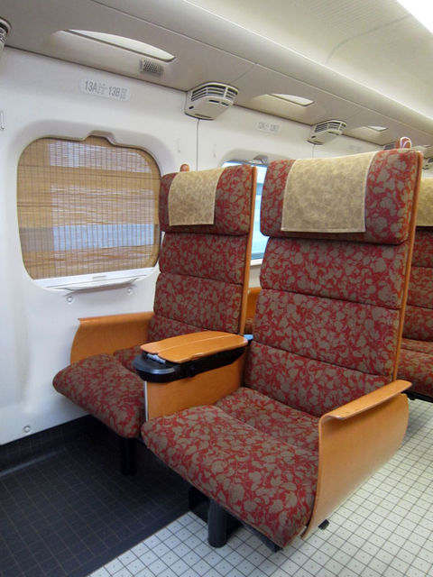 九州新幹線部分開通時から九州を走る800系。機構は700系をベースにしていますが、基本的に博多~鹿児島中央の九州新幹線内のみの運用です。この車両の魅力はやはりなんといってもインテリアではないでしょうか。日よけはすだれ、シートも西陣織など随所に和風なテイストが打ち出されています。