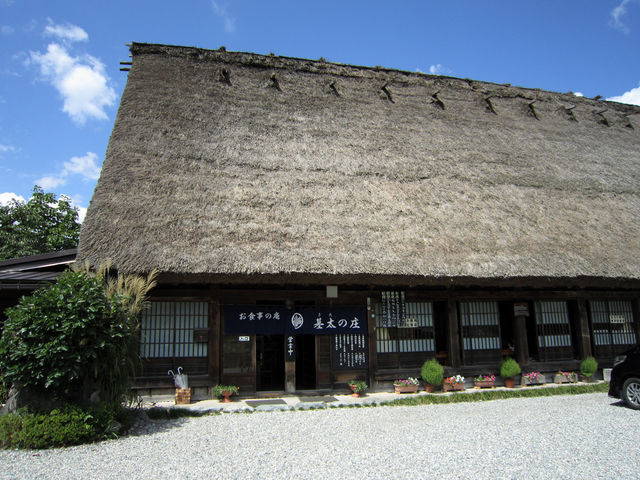 荻町集落の中心部からすこし外れたところにある食事処。和田家などからは遠いですが、徒歩圏内で、このあたりは画になる合掌集落の風景も見ることができる場所です。