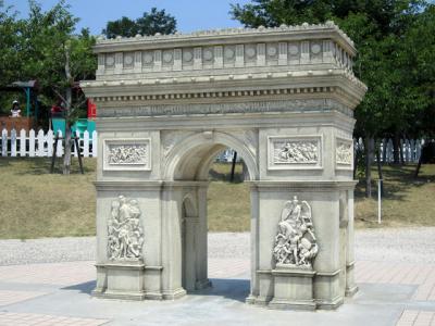 個人的にここの魅力は、世界遺産や史跡をミニチュアにしたミニチュアワールド。身長と同じぐらいの凱旋門やピサの斜塔と写真を撮るのが面白いです。