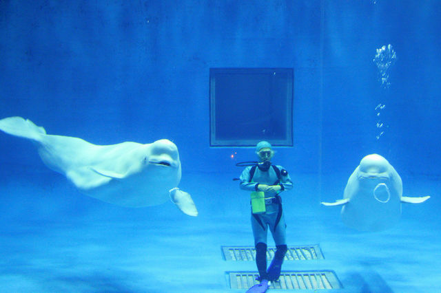 アクアスの目玉ともいえるシロイルカ(ベルーガ)。