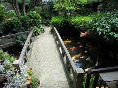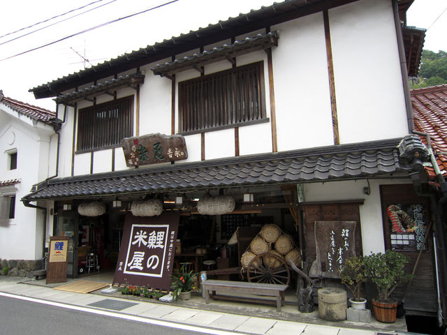 津和野の城下町の中心である殿町通りには、たくさんの鯉が泳いでいますが、以前はこの掘割に各住居から水路がつながっており、各住居には池があったそうです。その池にはたくさんの鯉を泳がせていたそうで、その風景が見られる場所がこの鯉の米屋です。