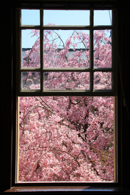 そしてロの字になったこの洋館の中庭には、見事な枝垂れ桜があり、中庭に腰を下ろしてしてみるも良いですし、洋館の窓越しにみるのも風情があっていいかと思います。