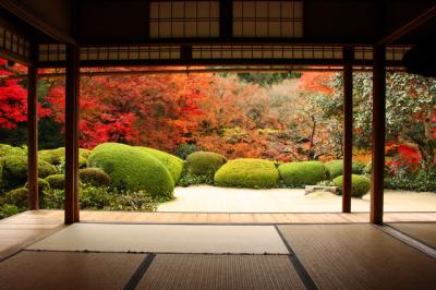特に紅葉の時期が美しく、手前の和室を入れて眺めるのが美しいのですが、開門から5分もすれば、気にせず前へ前へと陣取る方々がいてゆっくり眺められない印象でした。- 旅行時期