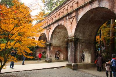 この水路閣には琵琶湖疏水の水が流れ、レンガ造りのアーチ橋が美しい事でも知られます。周囲には紅葉も多くありますが、境内の他のエリアより色づきが遅く遅い時期に楽しめる場所でもあります。