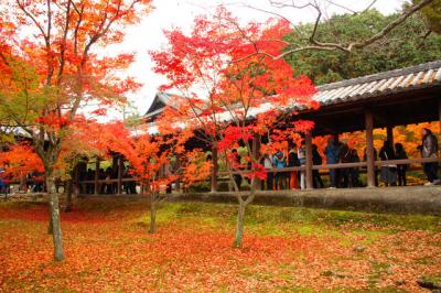 清水など東山の名所と、伏見の中間にあって日頃は比較的空いていますが、紅葉の時期には京都でも群を抜いて多くの人が訪れるお寺です。特に通天橋付近の紅葉は大変美しいですが、初詣かのように押し合いが起こるほど混雑し、のんびり眺める風情がある状態とは程遠いのが困りものです。