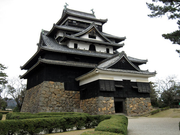天守は入り口側から見ると、大変美しく見えます。石垣や下見板張りの壁も見ものです。また天守からは、宍道湖も望めます。