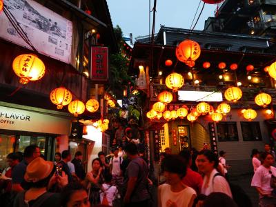 台湾の北部、台北からバスで1~2時間ほどのところにある観光地で、歴史的な雰囲気が残る人気観光地です。公共交通でのアクセスには在来線+バスなどがありますが、今回は時間と利便性を考慮して、旅行自体は個人手配でしたが、この九フンツアーの部分のみ、オプショナルツアーで申し込みをしました。時間がたっぷり用意されたツアーでしたので、商店が並ぶ通りを写真を撮りながら2往復、その後茶館で休むことができる程度の余裕がありました。翌日には台風が接近するという日でしたが、多くの観光客であふれていました。通路は狭く人は多い上、坂・階段も多いので、歩きやすく・動きやすい恰好をおすすめします。
