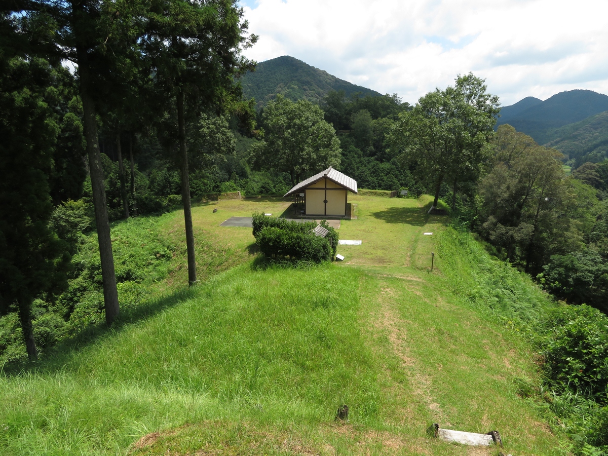 愛媛県の南西部にある城で、続日本100名城にも指定されています。予土線松丸駅の南側にそびえる山の上にあり、周辺の盆地にある集落を見下ろす高台になっています。この城の魅力は、曲輪が非常に多く残り、尾根筋に沿って階段状に残ることがはっきりと観察できることではないかと思います。一部では堀切や土塁なども観察できました。真夏の訪問でしたが、訪問されている方は数名見かけました。今回は予土線を利用してアクセスしましたが、本数の少ない予土線ではありますが、駅には温泉施設もあり、少し歩けば水族館が併設された道の駅もあるので、列車待ちでも退屈することなく過ごすことが出来ました。公共交通では松山・高知からも遠い場所ではありますが、訪れる価値のある素晴らしい城です。