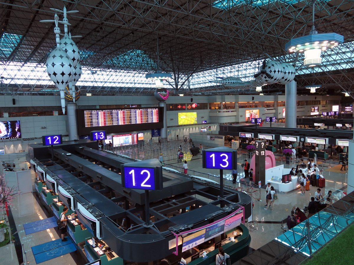 台北の空の玄関口台北桃園空港。台北にはもう一つ市内近くに台北松山空港もありますが、こちらは規模の都合上、国際線の発着は制限されており、日本からは羽田便のみとなっています。こちらは台北市内から距離がありますが、近年鉄道が開通し、市内へのアクセスも乗り換えなしで、スピーディーになりました。今回は、エバー航空の関西便で往復利用しました。ターミナルは少し変わった構造で、第一・第二ターミナルともに、H型のターミナルで、中央にチェックインエリア、左右にゲートなどがありエリアが伸びています。また、利用時は第一ターミナルと第二ターミナルの制限エリア内は行き来が出来ました。制限エリア外でも、ターミナル間を移動できる新交通で行き来ができます。第二ターミナルは飲食店も比較的多くありましたが、当日は台風による欠航・遅延が多く発生していたため、特に飲食店は非常に多くの利用客であふれかえっているような状況でした。4時間の遅延でしたが、特に退屈することなく過ごすことができるターミナル設備でした。