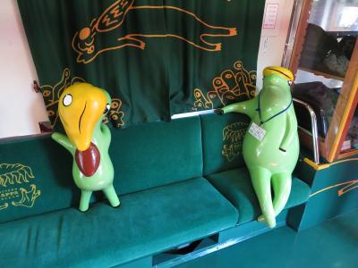 JR予土線を走る列車で、予土線沿線に海洋堂ホビー館があることもあって、コラボレーションをした列車がこの列車です。外観もさることながら、内装にもカッパが描かれており、ユニークなデザインが目を引きます。今回は、河後森城跡散策の後、松丸駅から宇和島駅まで利用しました。車内にはカッパのフィギュアが並ぶショーケースがあったり、座席に等身大近いカッパが座っている等、かっぱうようよ号という別名も納得です。ユニークな列車が多く走る予土線の目玉の一つとしておすすめです。