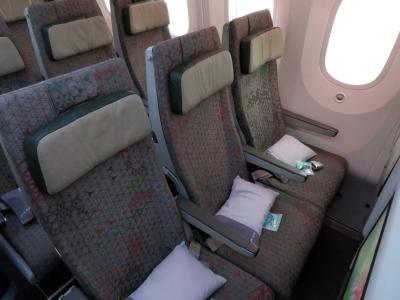 関西~台北の往復で利用しました。元々は大手旅行会社のセールツアーの予定でしたが、価格もほとんど変わらないことからエバー航空日本HPからの購入に変更しました。マイル積算・事前座席指定のメリットもあるため、こちらを選んで正解でした。往路は、関西11:10発 エバー航空BR177便 台北13:05着、使用機材はA330-200 B-16312でした。長年関西線で頑張っている機体ではありますが、機内は少し前にはなりますがリニューアルが行われたようです。個人用ディスプレイも小さいながらついていました。往路の機内食はルーローハンでした。復路は台北 定刻13:35発(17:30発) エバー航空BR130便 関西17:15着でした。復路は台風接近の為台風をやりすごしてからの発着となったため、約4時間遅れでの出発となりました。ただこの遅れの情報も、直販で購入していたため、メールで直接届いた上、機材が元々の787-10から787-9に変更となりましたが、事前に指定されていた座席も引き継がれました。機材は、元々は787-10予定でしたが、機材繰りもあってか787-9 B-17882に。ともあれ最新機材とは言える範囲で、大きな個人用ディスプレイに充実の内容でした。復路の機内食はカレーでした。機内食については往復ともエコノミーは選択肢はなく1択で、味はまずくはありませんが、微妙というのが正直なところです。5つ星と言うことでハードルを上げ過ぎた部分は否めませんが、他の5つ星エアラインに比べても機内食は期待外れでした。ただ、先述の遅延時の対応などは、申し分なく、機内での対応もてきぱきとしており、安心感を持って快適に過ごすことが出来ました。