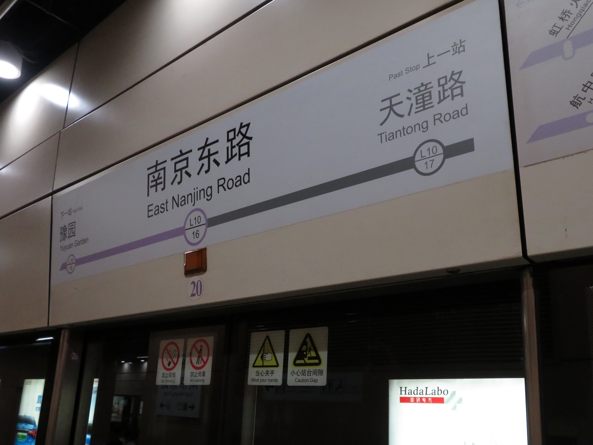 上海地下鉄2号線、10号線が乗り入れる南京東路駅。利用時は、10号線で宿泊予定の虹橋1号航站楼駅までを利用しました。ヨーロッパ風の建物や、高層ビルが立ち並ぶ浦東地区など、上海を代表する風景が見られる外灘地区への最寄り駅となる駅です。観光にも便利な駅だけあって、コンコースは多くの人でにぎわっていました。また、利用時は夜21:00頃でしたが、駅から外灘地区へ向かう人波がすごく、電車も混雑していました。観光にも便利な駅です。