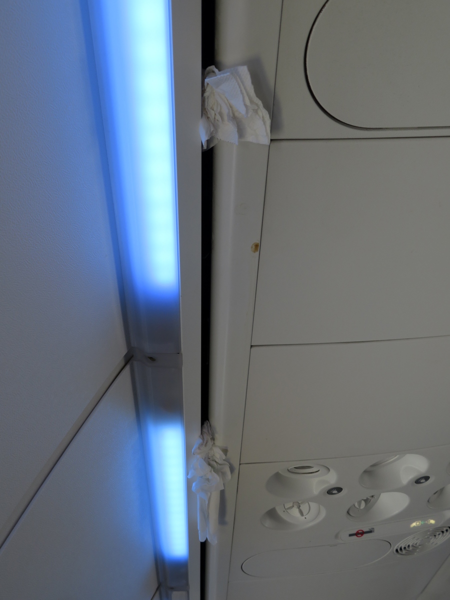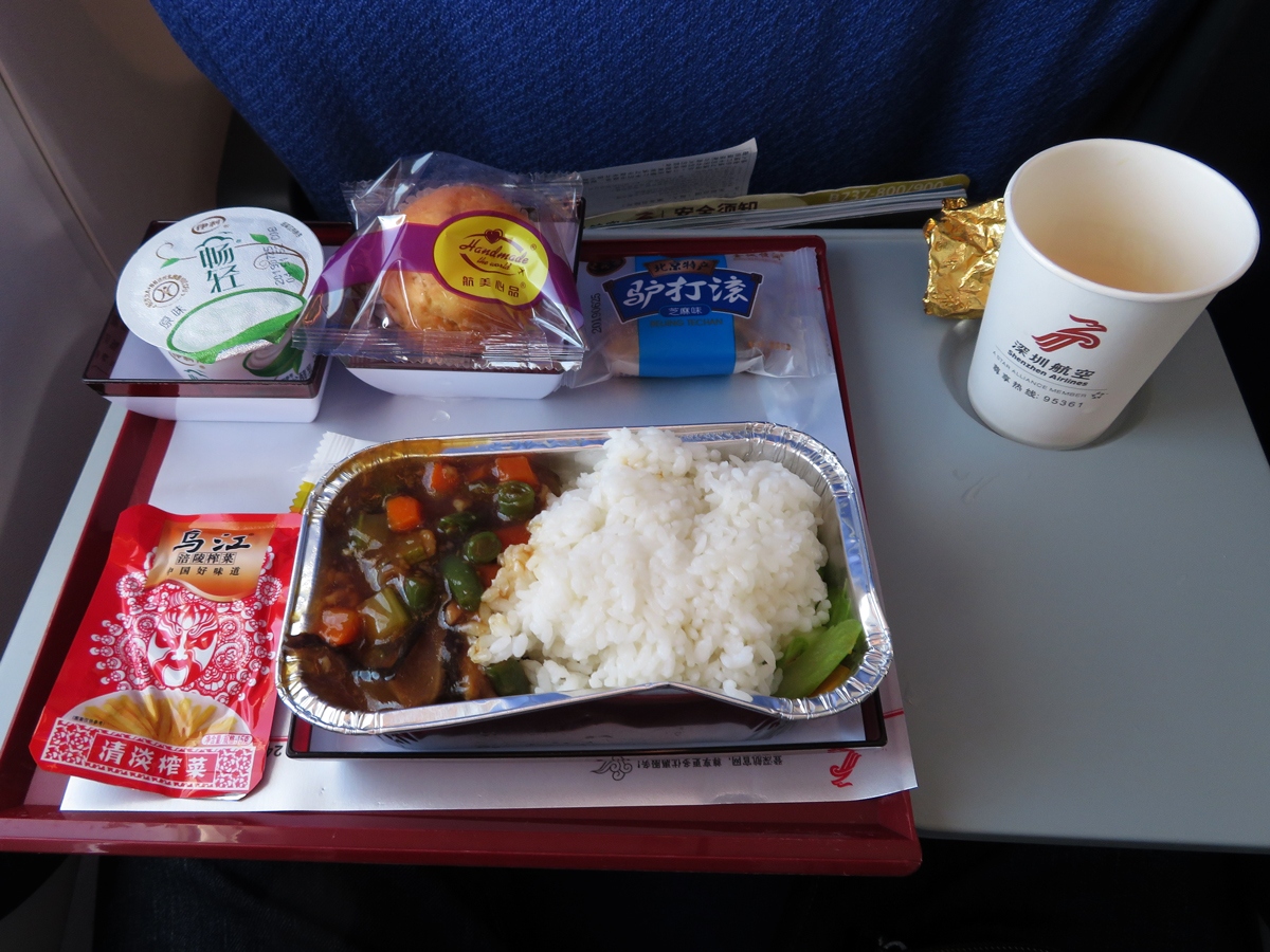 今回は、ANAのマイルを利用して、スターアライアンス特典航空券に引き換えし、北京13:50発 深圳(シンセン)航空 ZH9055便 大阪(関西)行を利用しました。予約段階では、ANAのサイトおよびコールセンターからは座席指定が前方、後方などのリクエストしかできず、リクエスト後しばらくして座席番号が通知されます。そこで、深セン航空の日本での代理店をしている、中国国際航空の日本支社コールセンターに電話をし、座席指定をお願いしたところすんなりと座席番号での指定が出来ました。当日北京でのチェックインも中国国際航空が行っていました。いくつかの便のチェックインがまとめて行われていたため、カウンターは非常に混雑していました。この便は沖留めがほとんどで、バスゲートでの搭乗となります。当日の使用機材は737-800 B-5671で、スカイインテリアを採用した737の中では比較的新しい機材ではありますが、以前の便でクーラーから水漏れがあったらしく、機体の壁と天井の隙間に、ペーパータオルが挟まれている場所がありました。たまに見かける光景ではありますが、事情を知らない人は不安に感じる光景ではないかと思います。北京の混雑もありましたが、特に遅れなく出発・到着しました。機内は大半が中国の方でした。客室乗務員の方は、男性女性とも非常に対応がよく、好印象でした。機内食も北京積みと思われますが、おいしくいただきました。