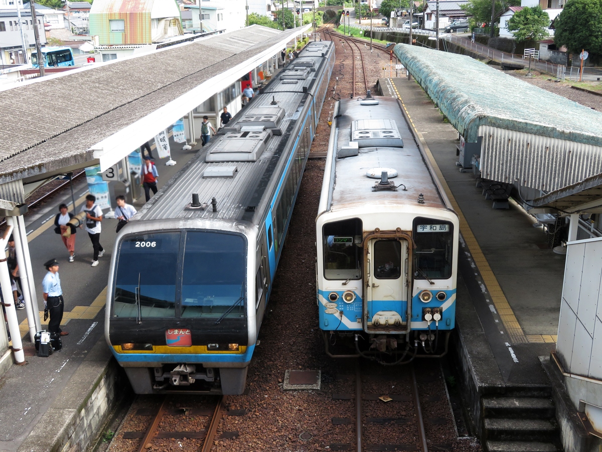 香川県の多度津から窪川駅を結ぶ土讃線。今回は、岡山からの特急南風で高知まで、翌日に特急しまんとで高知~窪川間を利用しました。土讃線内の特急は岡山~高知間の南風、高松~高知・中村・宿毛間のしまんと、高知~中村・宿毛間のあしずりと定期列車としては3つの特急が走っていますが、多度津~高知までは早朝・深夜を除いて原則1時間に1本、高知~中村間は2~1時間に1本特急が走っています。県境を越える区間の場合は普通列車の本数も大きく減りますので特急利用が便利です。特急南風は夏休みということもあり岡山発車時点でかなりの乗車率でした。対してしまんとは、高知で下車した方が多く、その先の区間は半数以下の埋まり具合でした。しまんとについては区間利用の方も多く、高知以遠の区間には特急利用での移動が便利です。
