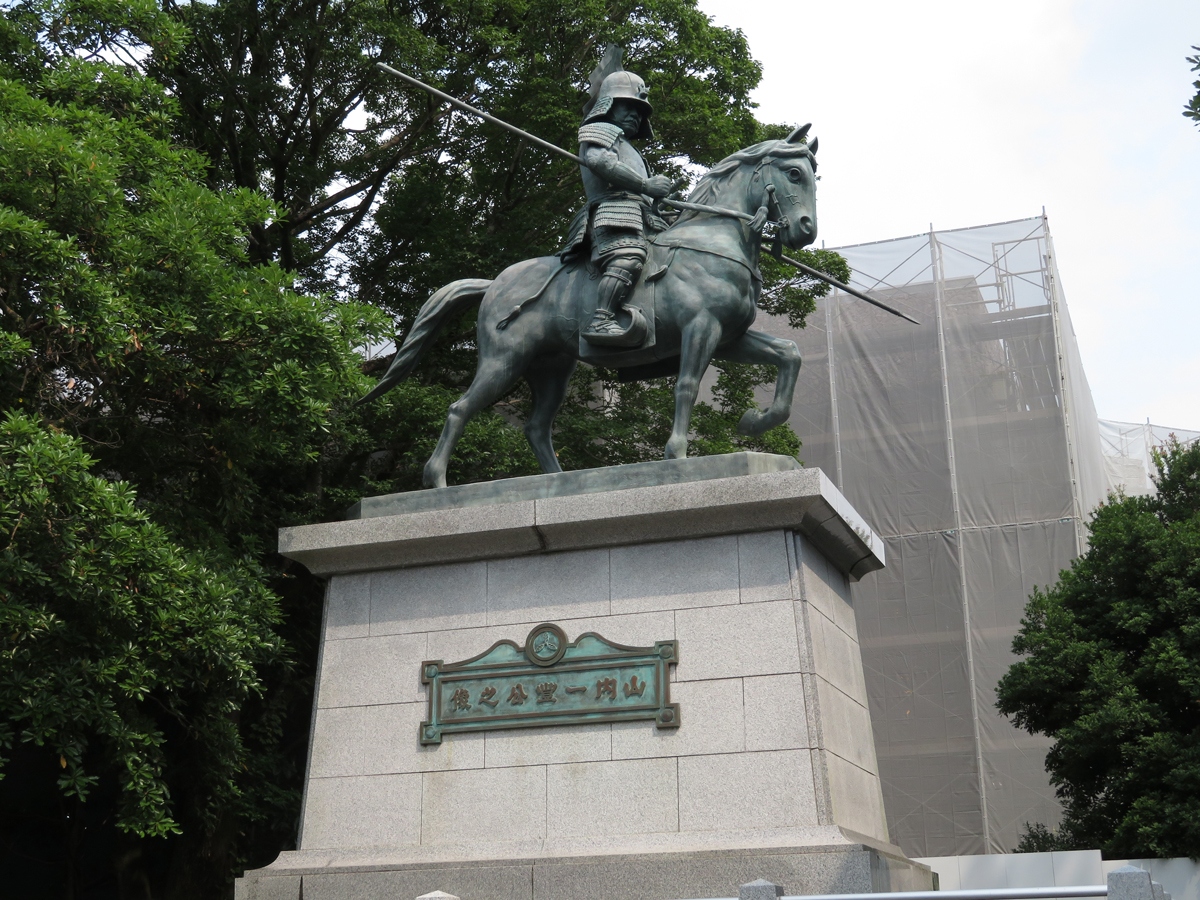 高知城の麓、ひろめ市場からも近い場所に、関ヶ原の戦いの後に土佐に入った山内一豊の像があります。馬上で槍を持つ姿の銅像で、高知城内へ行く方のほとんどがとおる追手門近くにあるため、多くの方が撮影などをされているスポットです。大河ドラマの主人公にもなった人物でもありますので、高知城観光の際は外せないスポットです。