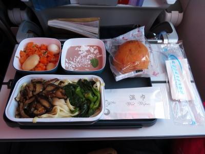 今回は上海虹橋~北京のCA1502便を利用しました。上海虹橋定刻11:50発でしたが、朝の時点で天候の影響で2時間近く遅れが発表されていました。確かに前日北京の天候は荒れ気味だったようで、この便は国際線機材のA350を使用することから、国際線の遅れを引きずりやすい便でもあります。また、時間帯的に混雑空港である北京の空域規制を受けることもあるようで、遅れることが比較的多い便であるようには感じていました。予約に関してですが、今回は中国国際航空の中国版のウェブサイトを英語表示して直接購入しました。というのも、日本版のウェブサイトでは、この便はプレミアムエコノミーの座席が最安値と表示され、エコノミーがそもそも選択肢に表示されないようになっていたため、やむなく中国版サイトから購入するに至りました。予約がしっかり行えているか不安もありましたので、TRAVELSKY.comにおいてE-チケットの確認も行いました。当日は予約後に表示されたバーコードをカウンター見せるだけで、あっさりとチェックインができました。北京から遅れをもってやってきた使用機材は、A350 B-1085は先述の通り国際線機材であることもあり、個人用ディスプレイも大きく、快適に過ごすことが出来ました。この便では欧米系のCAの方も乗務しており、英語も問題なく使えました。客室乗務員の方々の対応は特に問題はなく。機内食はしいたけたっぷりの麺で、味付けはなかなかよかったのですが、その他の付け合せも含めて、特においしいとは思わないレベルの範囲です。利用便は山東省上空に差し掛かったあたりで、旋回して上空待機がありましたが、その後無事に着陸し、結局2時間遅れのまま到着となりました。ただし機材はこの後国際線で使用するようで、到着したのは第三ターミナルの最も北にある国際線ブロック。したがって、搭乗橋ではなく、搭乗橋の手前にある階段を下されて、バスに乗り換えて、国内線ブロックの建物に到着という手順となることから、さらに時間がかかることとなりました。国内線で国際線機材に乗ることができるお得便ではありますが、国際線機材の間合い運用の場合、遅れの影響を受けやすいことや北京での到着ゲートなど、時間的な注意は必要であると感じました。