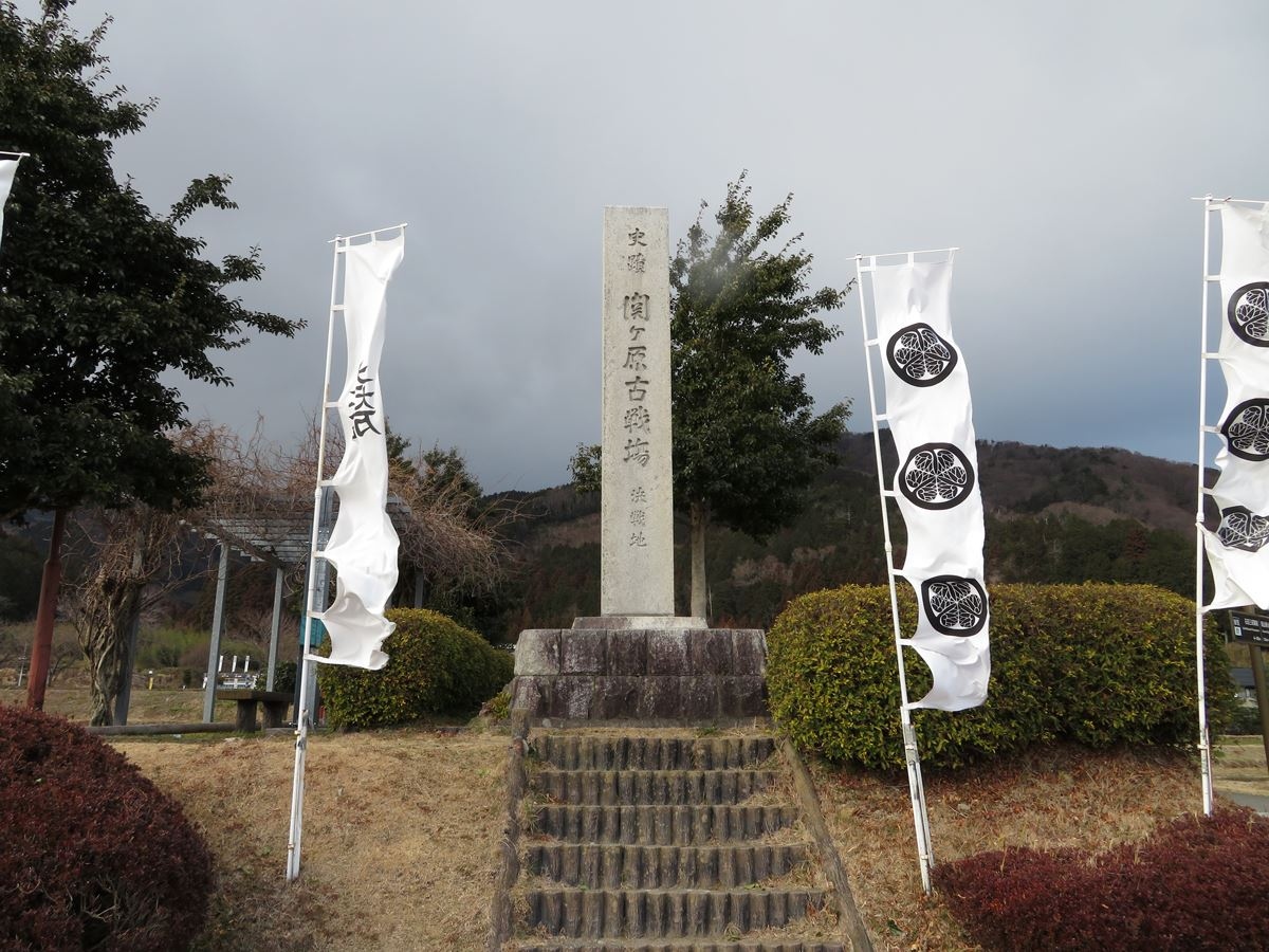 加藤清正と対立し、西軍に属した小西行長の陣跡は、関ヶ原から西北西の方向、石田三成陣跡の南の方向にあります。周辺には島津義弘陣跡もあり、これらと併せて巡ることもできます。陣跡は案内板、石碑、旗が立つ程度ではありますが、石田三成陣跡が遠くに見える場所にあり、その旨の解説板も立っています。実際の戦いの際にも様子が見えていたのかと創造を掻き立てる場所です。西軍でも重要な武将の陣跡であり、西軍の陣跡めぐりでは外せない場所です。
