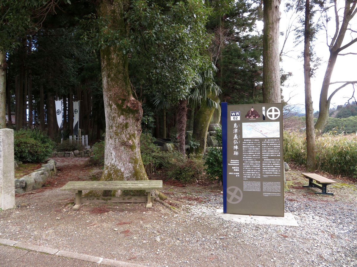島津義弘といえば、徳川家康を驚かせたという島津の退き口ですが、その部隊がこの場所。石田三成陣跡から真南、徳川家康の最後の陣跡の正面に当たる位置にあります。周囲は小さな林が巡っており、少し見つけにくいので注意が必要です。関ヶ原の戦いでも有名な逸話が残る場所ですので、外せない場所です。