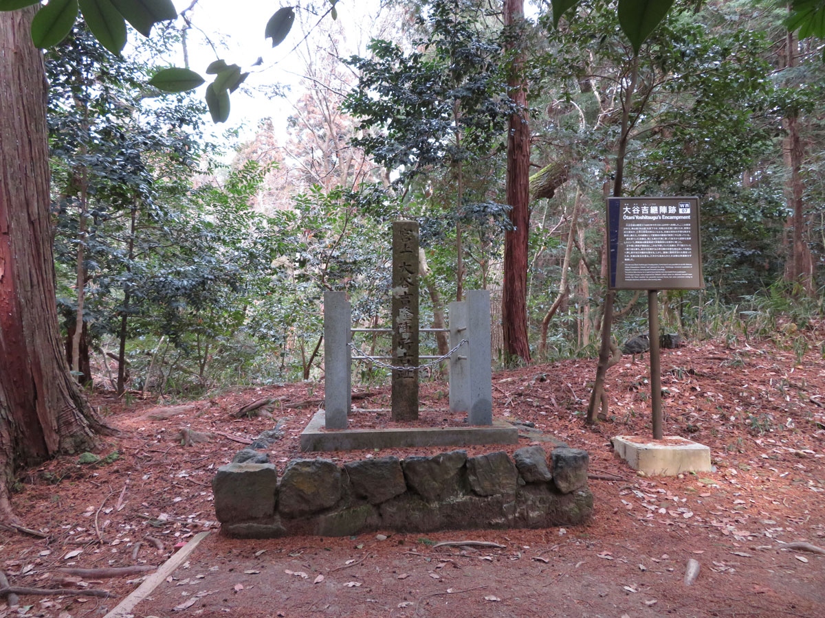 石田三成の盟友とも言われ、敗戦を予測していたが三成の西軍についたとも伝わる大谷吉継。寝返りをしたとして知られる小早川秀秋が向かいの山に陣を張るという場所で、奮戦し、この地で亡くなりました。陣跡は山の中にあり、神社の鳥居をくぐり、JR東海道本線の踏切を渡って、階段などで整備された山道を歩くことになります。途中には展望場所もありますが、陣跡の石碑は周囲を林で囲まれた場所にあります。軽いハイキングになりますので、安全には注意の上での訪問をお勧めします。