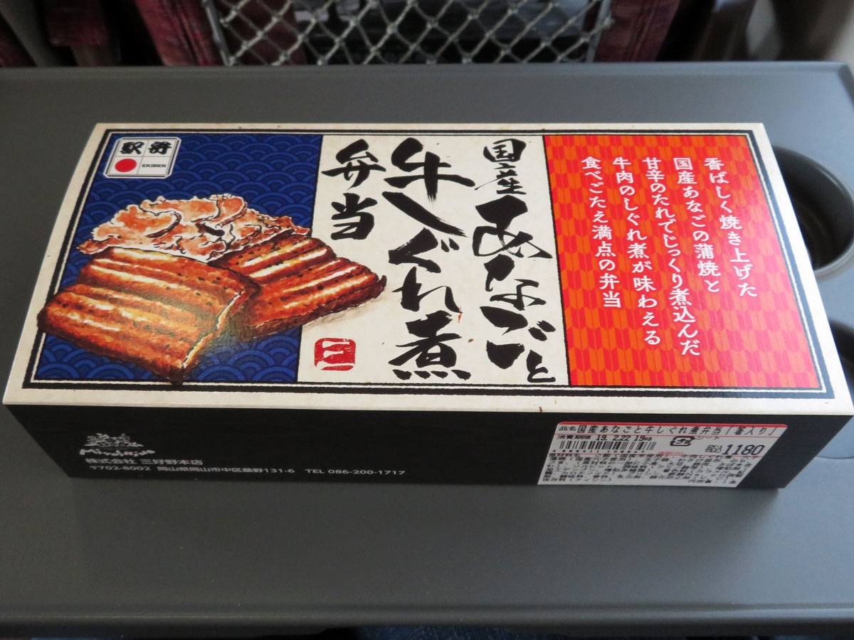 岡山駅の新幹線改札内の駅弁売り場で取扱いがある駅弁のお店。今回は、「国産あなごと牛しぐれ煮弁当」を購入しました。瀬戸内名物のあなごだけでなく、牛のしぐれ煮がご飯の上に乗り、しっかりした味のものを食べたい方にはお勧めです。その他、多くの駅弁が取りそろえられており、岡山名物もありますので、おすすめです。