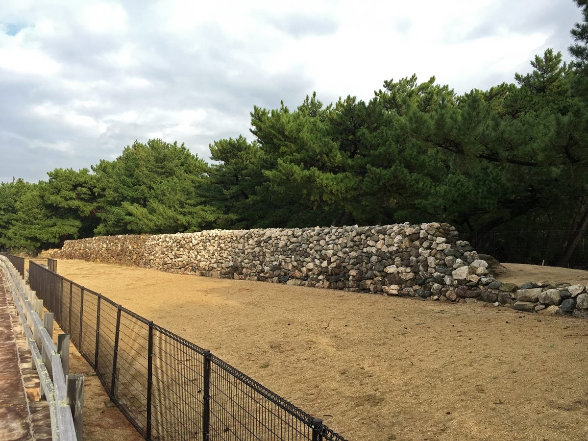 663年に起こった白村江の戦いの後、日本の各地に守りを固める城が築かれます。その一つがこの大野城で、中国・朝鮮半島方面から見て九州の玄関口にあたることから、重要視された城であったと伝わります。現在は森が広がる山となっていますが、一部は公園のように整備されています。太宰府方面から宇美町方面へは車が通ることができる道路が通っており、車でのアクセスも可能です。ただし訪問時は崖くずれのため、車は通行止めとなっていました。また車でのアクセスの場合、土塁や建造物の礎石、百石垣などは車道からそれほど歩かずにアクセス可能です。ただし、大石垣はハイキング・登山といった様子で森に分け入っていきますので、軽装では避けた方がいい場所です。また徒歩でのアクセスは、この車道を歩いて登るほか、大宰府政庁跡付近から登山道もありますが、谷間を攻められないよう守りを固めた大石垣に繋がるルートではあるものの、谷筋であることから上りはかなり急です。みどころはいくつかありますが、やはり一番の見どころは百石垣です。そそり立ち様な斜面に、登れないように張り巡らせた石垣は圧巻でした。太宰府天満宮から雨の中早足で、土塁、門跡、礎石、大石垣、百石垣と巡って宇美駅まで徒歩2時間20分でした。