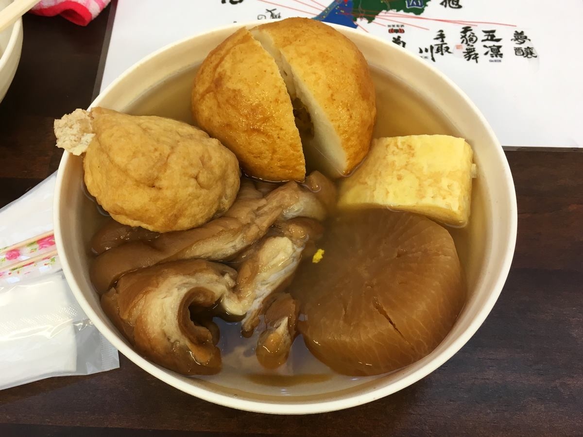 近江町市場にある金沢おでんのお店。おでんはメニューから1つずつ注文でき、具も非常に多く目移りしてしまいそうなほどです。金沢おでんの特徴である車麩や、北陸らしいのどぐろの巾着などもありました。店内は立って食べるカウンターがあり、訪問時も非常に多くの方で賑わっていました。