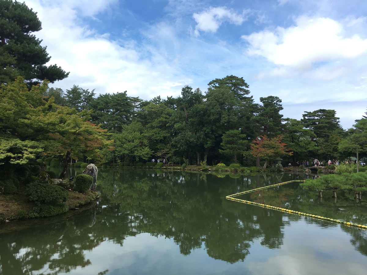 金沢を代表する風景である兼六園。その庭の美しさには、やはり水と植物が欠かせません。その中でも庭園のほぼ中央にあり、庭園内で最も大きいのがこの霞ヶ池で、徽軫灯籠などとともに、写真で紹介される風景にも写る池でもあります。兼六園はこの池の周囲をはじめとして、のんびりと歩いて回る回遊式庭園です。池にはコイなどが優雅に泳ぎ、庭園の風景に色を添えています。金沢を代表する兼六園は欠かせない池ですので、ぜひいけの周囲をぐるっと歩いて回ってみるのがおすすめです。