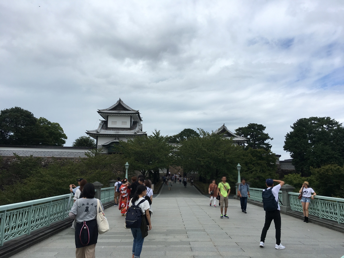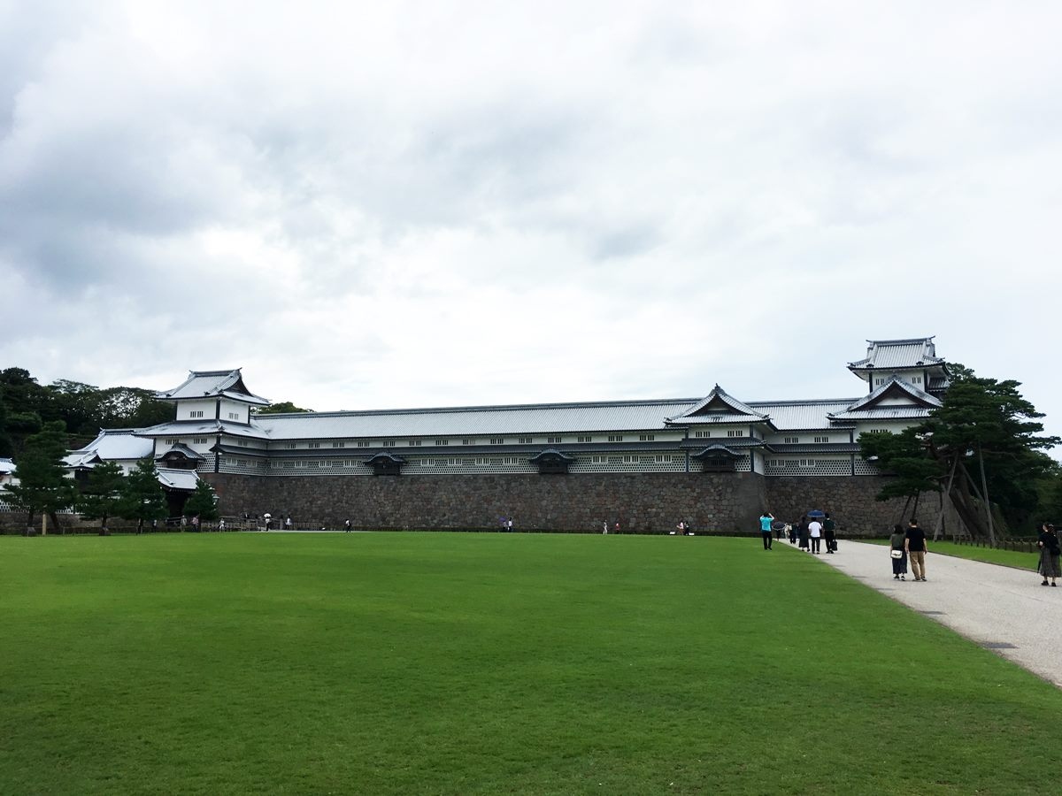 金沢城に石川門側から入った場所にある広場で、現在の金沢城における観光の中心地の一つともいえる場所です。広場からは復元された菱櫓・五十間長屋の全体を一望でき、広場の中央に敷き詰められた芝生は夏には緑が非常に綺麗になることから、櫓とのコントラストが美しい場所です。
