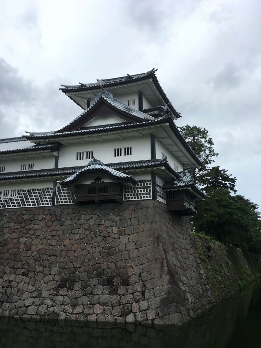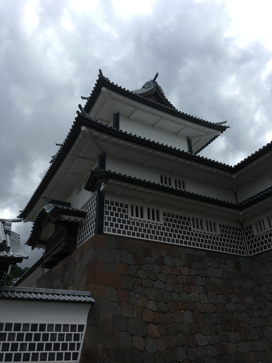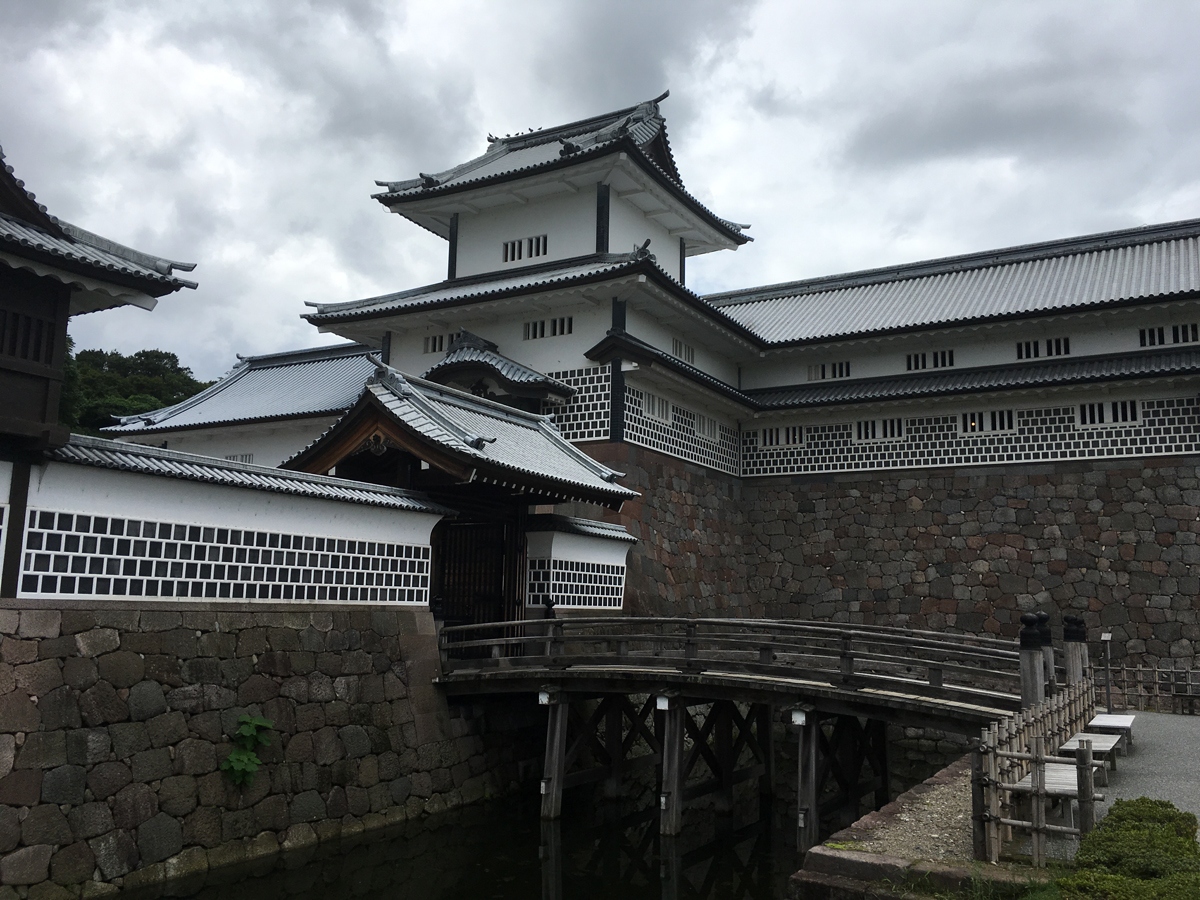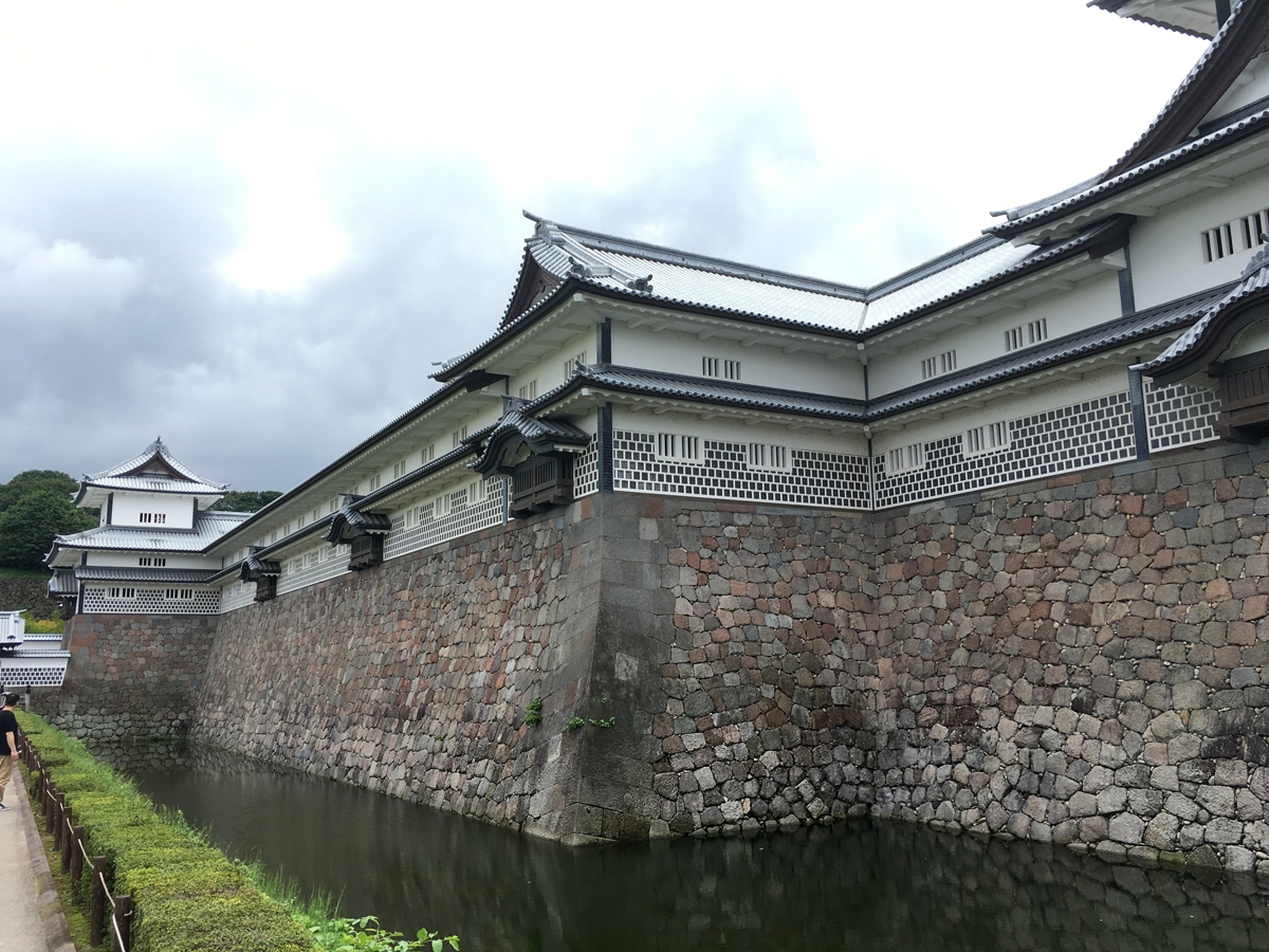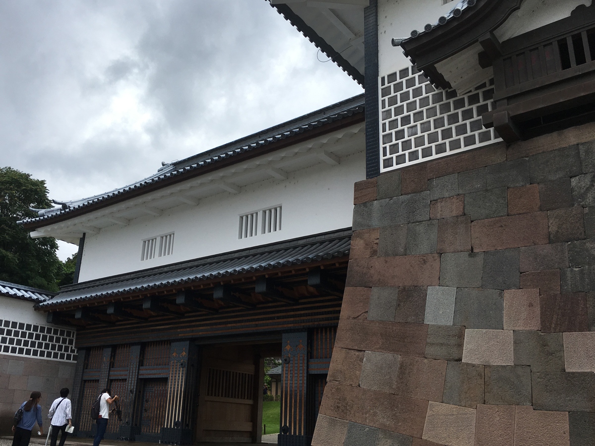 金沢がある石川県の由来となった石川郡の名前を冠する門で、城の裏口に当たる搦手の門ではありますが、兼六園側から橋を通ってアクセスできるメインルートであることから、場内でも非常に有名な門となっています。他の城内の建築同様、海鼠壁が特徴です。以前の訪問時は、修繕工事中で囲いがされていましたが、今回はそれも完了し、枡形構造をじっくりと観察することが出来ました。