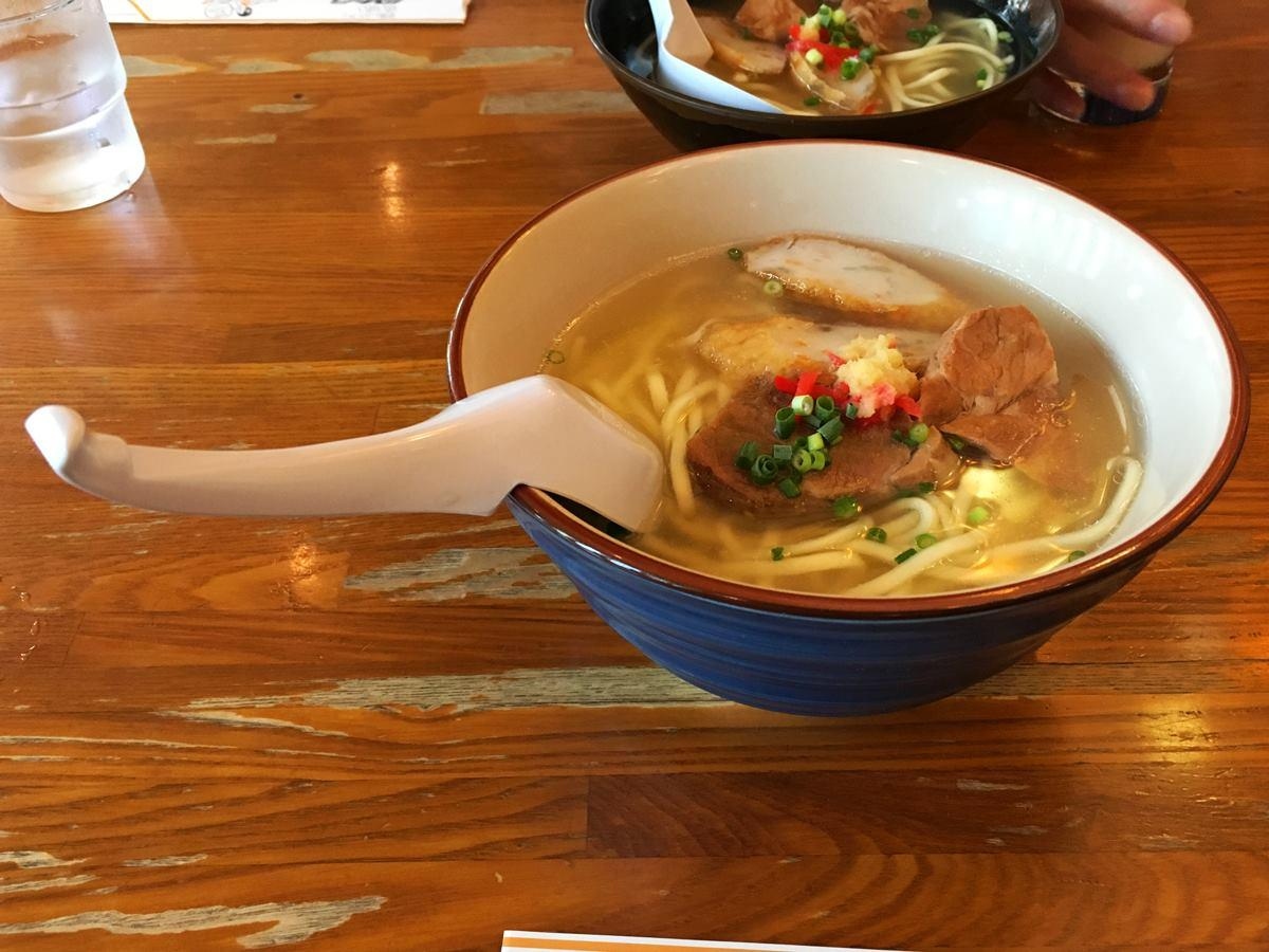 宮古空港で最後の宮古そばをと思いこの店舗に入りました。空港にはよくある、なんでもそろう飲食店ではありますが、沖縄らしい宮古そばやバナナジュースなどもあり、宮古島最後の食事と言うことでいただきました。グループで訪れてそれぞれがいろいろなものを食べたいときには重宝するかもしれません。窓側の席は飛行機が直接見えるわけではなく、中庭のような場所や、搭乗口へ向かう通路の向こうにしか飛行機は見えません。