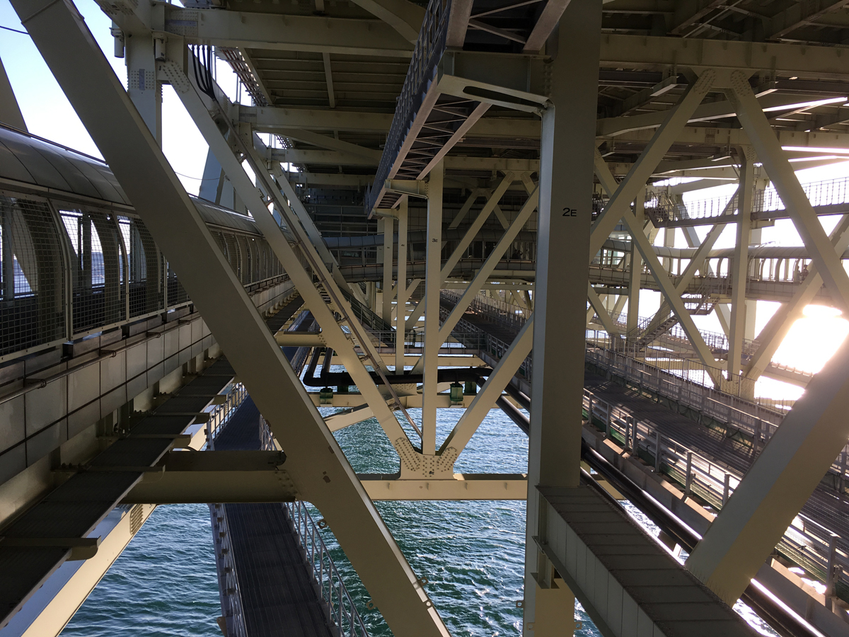 ただ橋の下で頑丈な柱や梁などが多く張り巡らされているため、遠方の景色を見るには、一部に設置されているガラス張りのゾーンに限られます。また道路の交通によって橋は絶えず揺れています。気にならない程度ではありますが、苦手な人はご注意ください。- 旅行時期